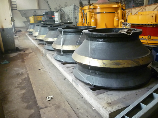軋(zhá)臼壁和(hé)破碎壁是在圓(yuán)錐破中一(yī)起運轉工作對物料進行破碎的主(zhǔ)要部件。圓錐破(pò)在運作的時候,破碎壁就會做軌跡運(yùn)動,和軋臼壁的距離(lí)時而(ér)靠近時而遠離,達到擠壓(yā)破碎物料,部分物料會從開邊(biān)排料口排出。在圓(yuán)錐破碎機中(zhōng),破碎壁和軋(zhá)臼壁是直接接觸物料的主要部件,使用一段時間後,不(bú)可避免的會產生磨損。那麽,破(pò)碎壁和軋臼壁的使用壽命大約為多久呢?