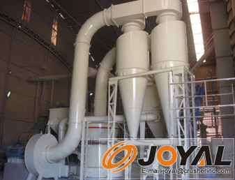 充分研磨後的物料,經收塵器收集,用(yòng)空氣輸送斜槽、提升機等輸送設(shè)備送入成品庫中(zhōng)儲存。