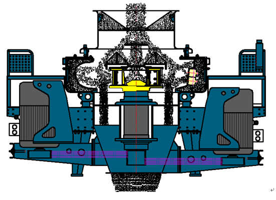 ②、製砂機中心進料伴隨瀑落料“石打鐵(tiě)”工作原理(lǐ)