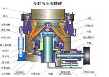3)安裝好定錐襯板後,即可安裝壓鐵(tiě)、密封圈和料鬥等零部件。