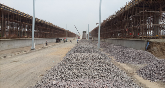 鐵(tiě)路(lù)道渣是鐵路建設的主要原料,鐵路上(shàng)的枕木就是(shì)靠這些石渣承重,並在均勻受壓的情況下保持長久的穩定與(yǔ)堅實。若是全部用水泥鋪在下麵(miàn)的話(huà),對鐵軌就會造成很大的壓力,導(dǎo)致鋼軌的使用壽命縮短,隨著現代高速鐵路的標(biāo)準提高(gāo),普(pǔ)通道渣已不能滿足其要求(qiú),因此就要鋼筋混(hún)凝土路基。但不管(guǎn)是采用鐵路道渣,還(hái)是鋼(gāng)筋(jīn)混凝土路基,都(dōu)需要相關破碎設備生產出合格的鐵道用石子。