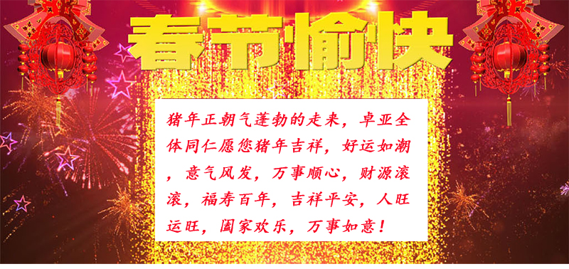 新(xīn)年來(lái)臨之際(jì),祝您在新的一(yī)年裏生意興隆、萬事如意、幸福安康、豬年大(dà)吉!